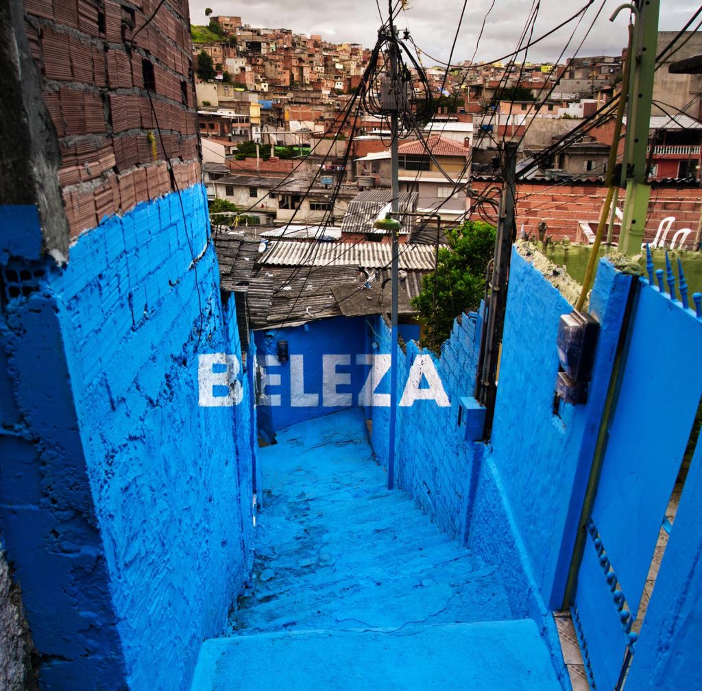 Vila Brasilândia es una de tantas comunidades que proliferan en la periferia de São Paulo en la que viven más de 300.000 personas. La favela es un lugar complejo, cuyo pulso real se encuentra en los serpenteantes callejuelas que la recorren y dan acceso a las casas: estas grietas se conocen como “becos”, en los tramos llanos, y “vielas”, en los tramos de escaleras, y son los verdaderos articuladores de la vida interna de la comunidad. Belleza, Amor, Poesía, Orgullo… son palabras que sintetizan lo que el equipo de Boa Mistura experimentó con las gentes de Vila Brasilândia.
