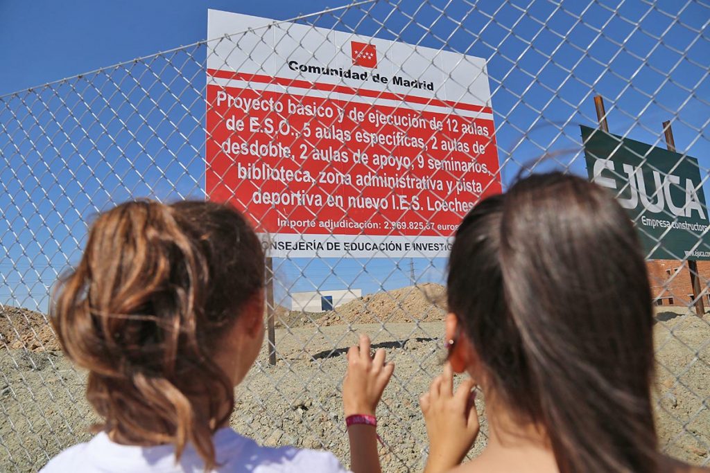 Así, en el SIES Luis de Góngora de Loeches, las paredes de la fachada aún no habían completado siquiera su revestimiento y en la propia entrada se amontonaban materiales de construcción y obras a medio hacer. Los padres y madres presentes indicaron que no pensaban permitir que sus hijos e hijas asistieran a clase al día siguiente con las instalaciones del centro en ese estado.
