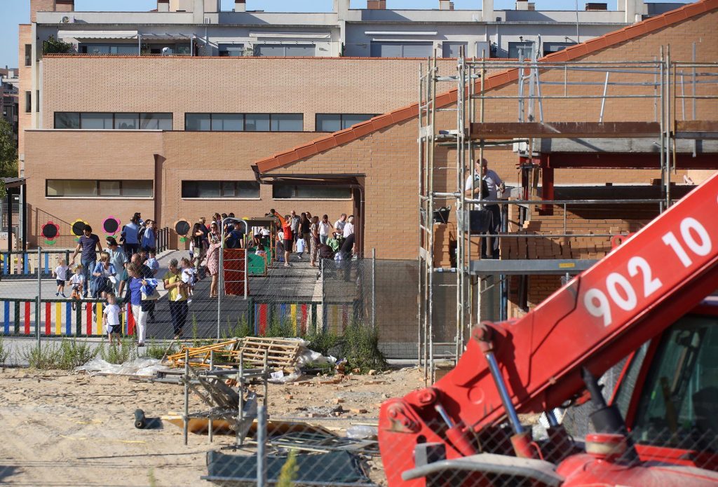 Grúas, excavadoras, remolques, apisonadoras, andamios y cemento. Este es el panorama con el que se han encontrado más de 30.000 niños y niñas al acudir a sus centros el primer día de ‘cole’ y de instituto. Una situación que, un año más, vuelve a reproducirse en los centros educativos públicos de la Comunidad de Madrid.